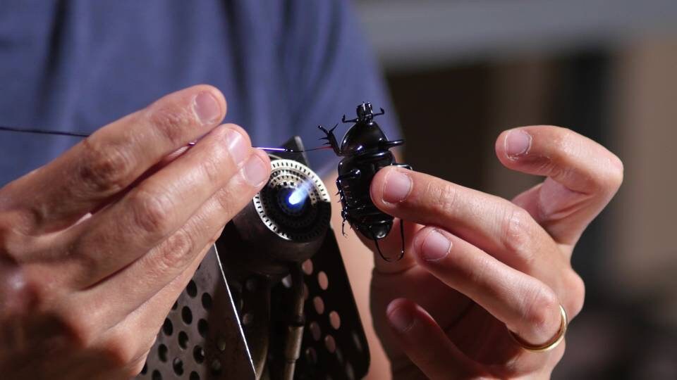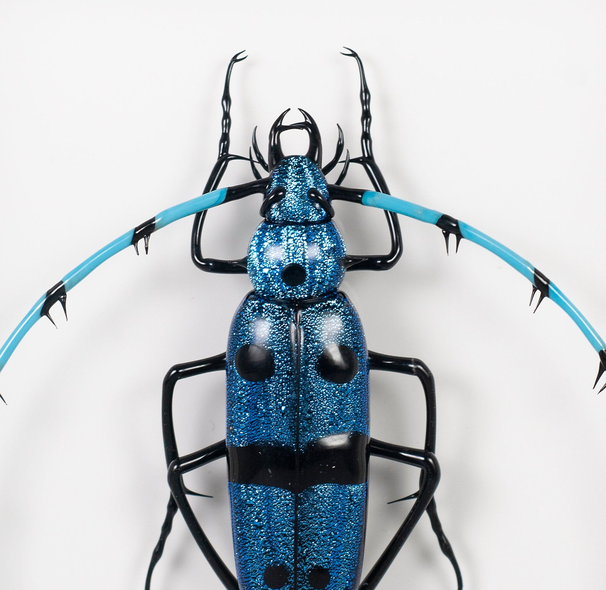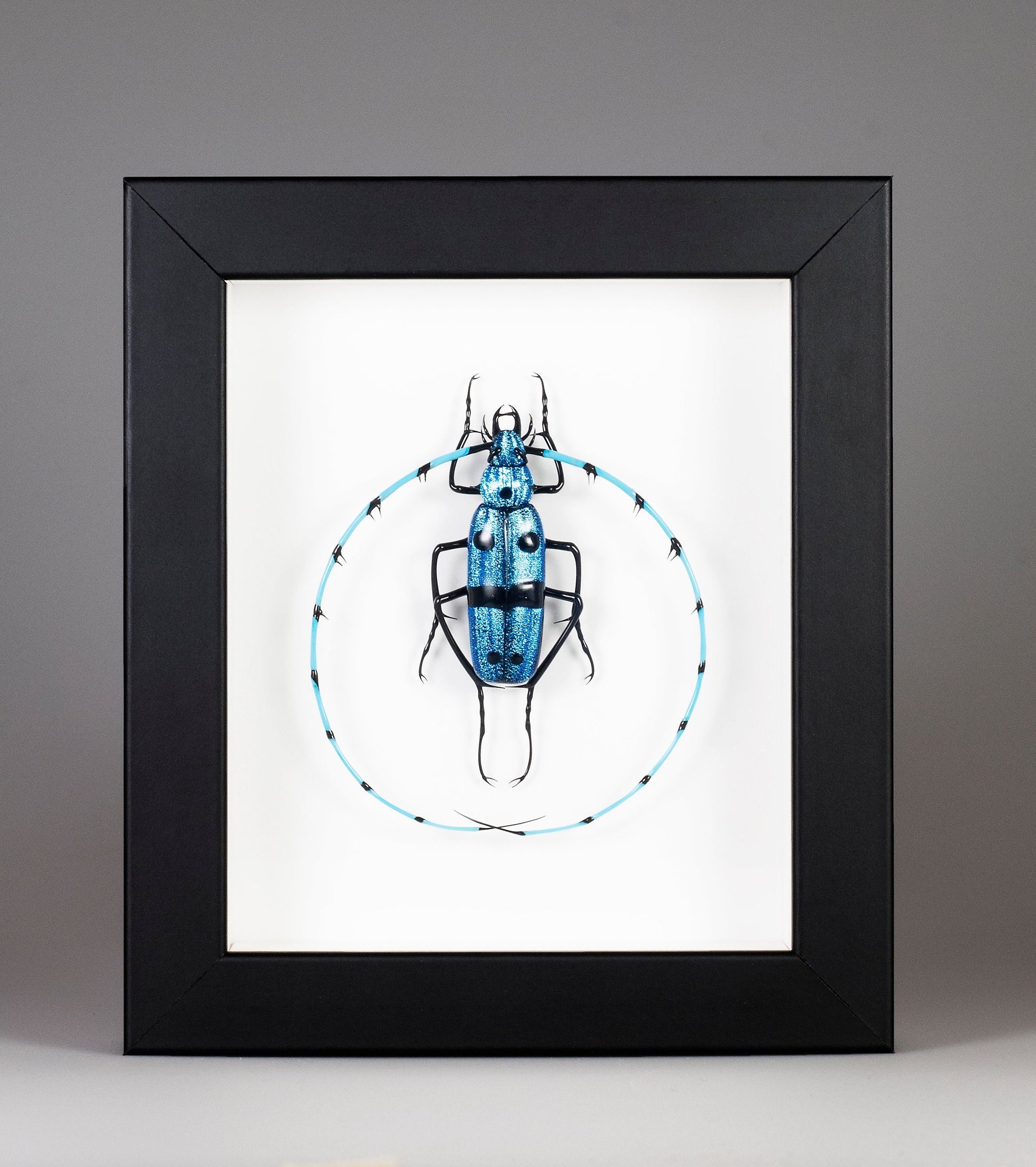 Scarabeo in vetro di Murano realizzato a lume in cornice di legno nero - Scultura in vetro di Murano - Miniatura in vetro - Scarabeo incorniciato