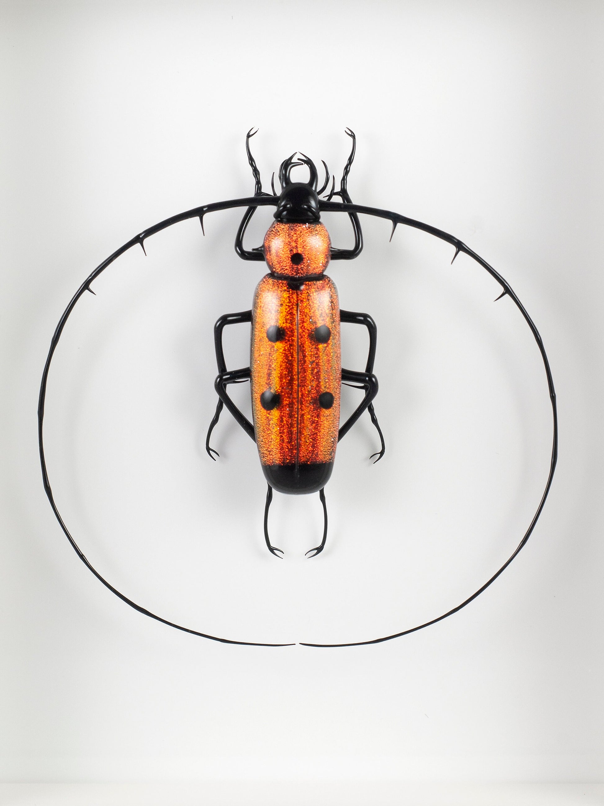 Scarabeo in vetro di Murano realizzato a lume in cornice di legno nero - Scultura in vetro di Murano - Miniatura in vetro - Scarabeo incorniciato