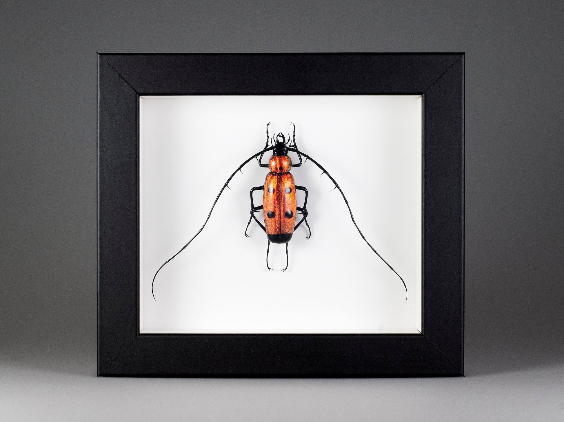 Scarabeo in vetro di Murano realizzato a lume in cornice di legno nero - Scultura in vetro di Murano - Miniatura in vetro - Scarabeo incorniciato